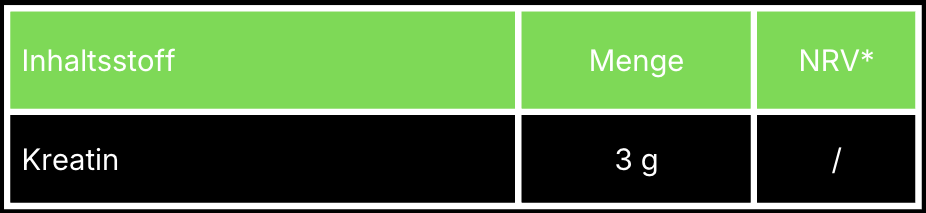 (*) Kreatin erhöht die körperliche Leistung bei kurzzeitiger, intensiver körperlicher Betätigung.