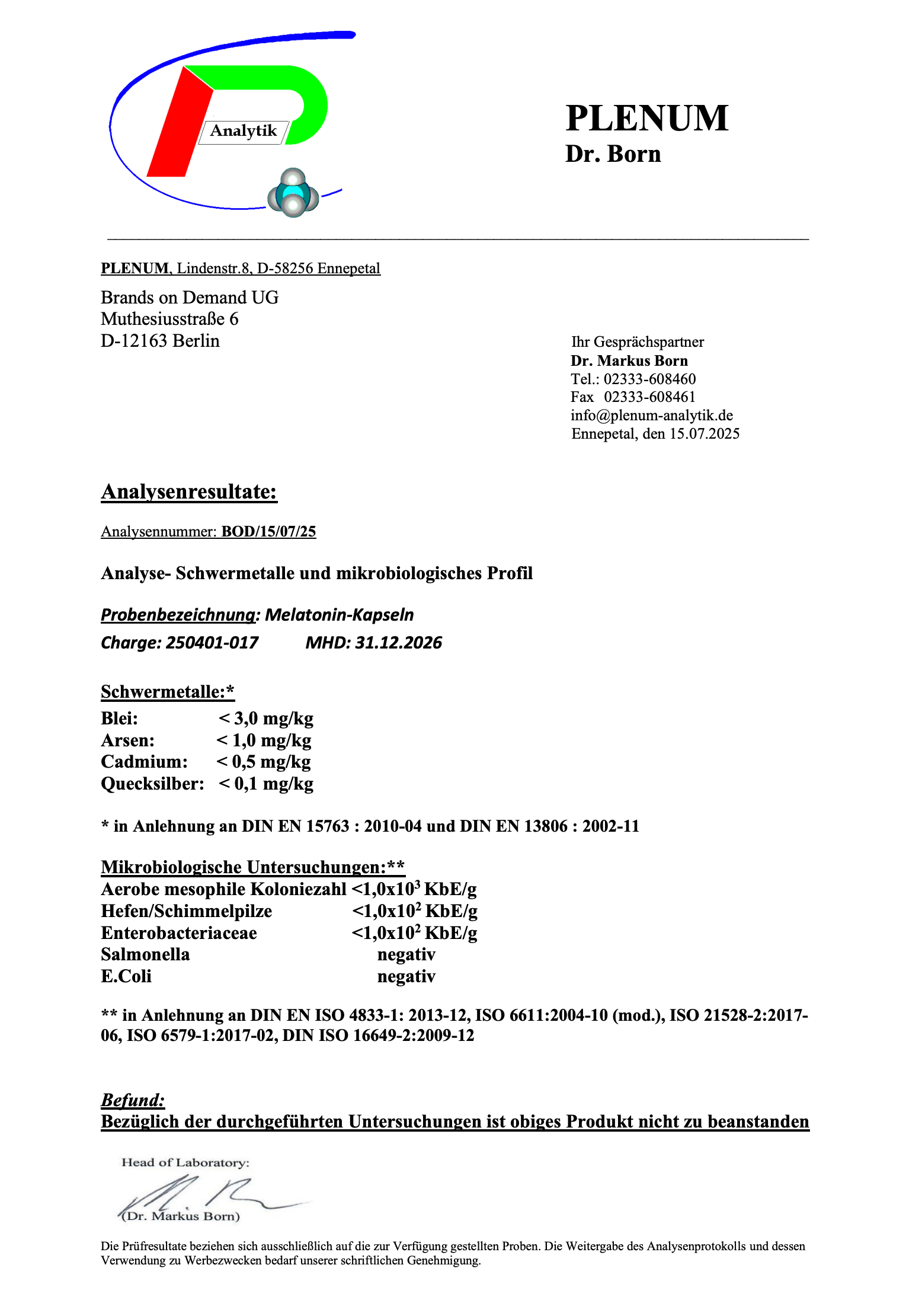 Melatonin, mikrokristalline Cellulose, Kapselhülle: Hydroxypropylmethylcellulose